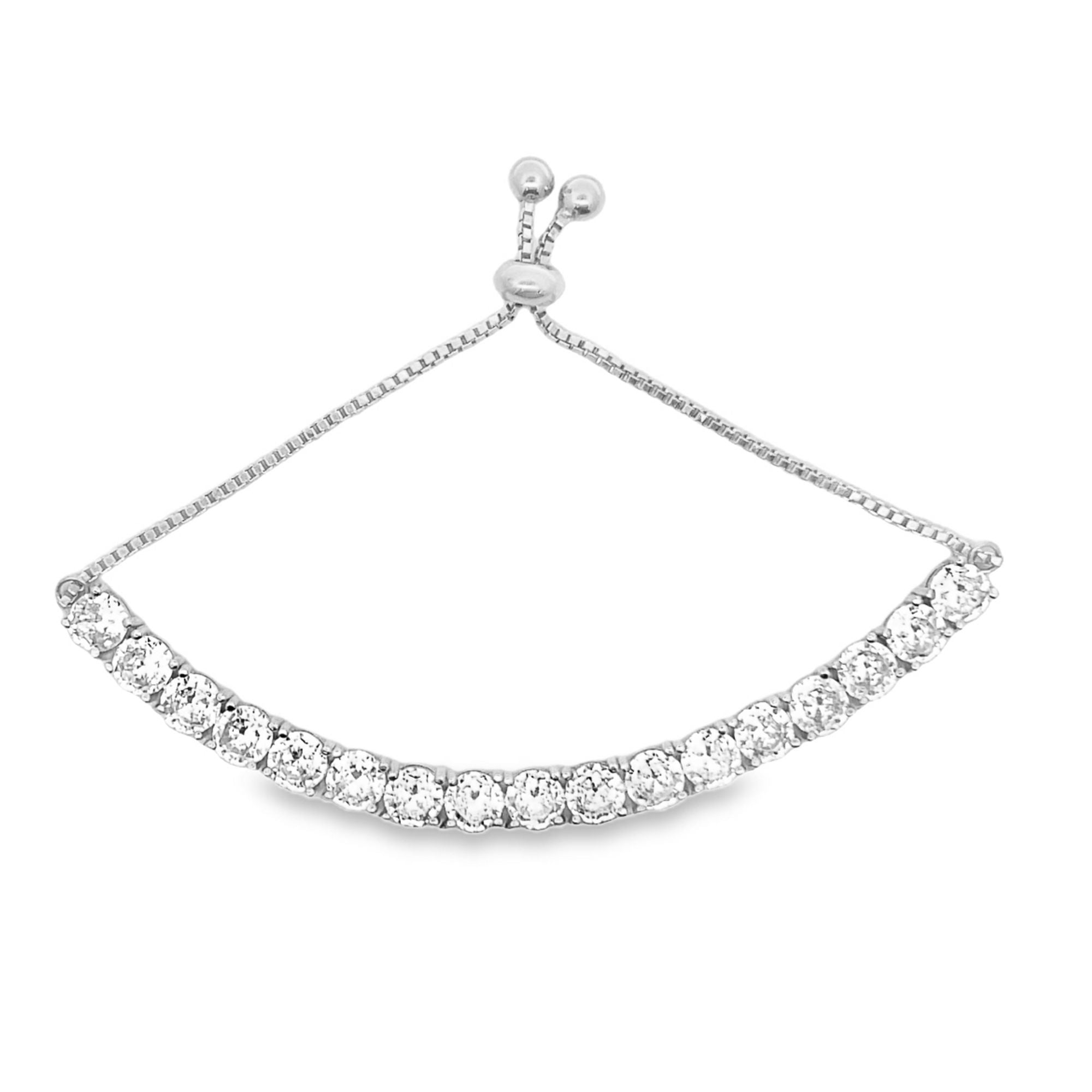 Adjustable Box Chain Bracelet With Large Round Clear CZ Stones (I117)