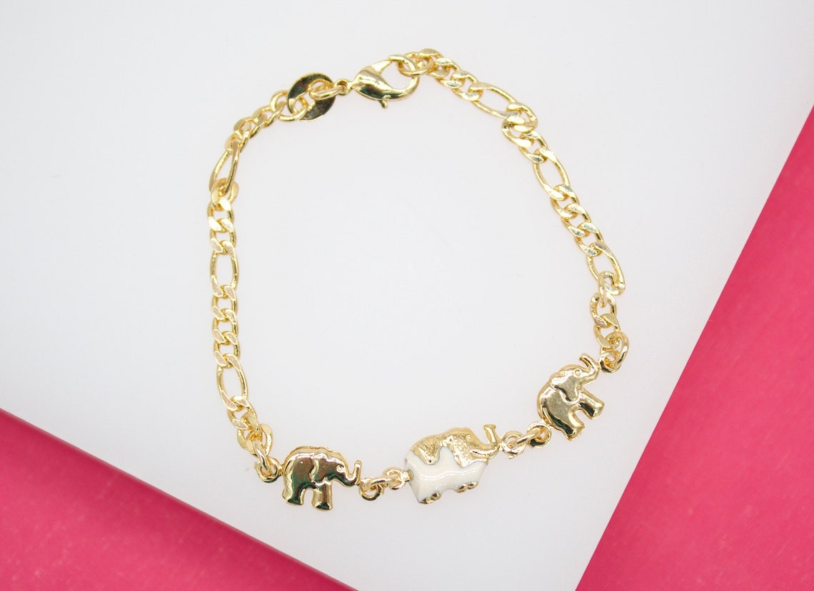 18K Gold Filled Enamel Elephant Figaro Bracelet (XX15)