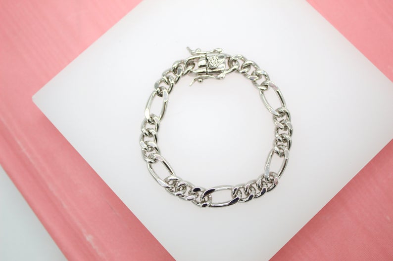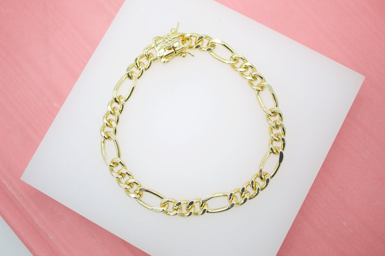 18K Gold Filled Figaro 7mm Link Chain Bracelet (I362)