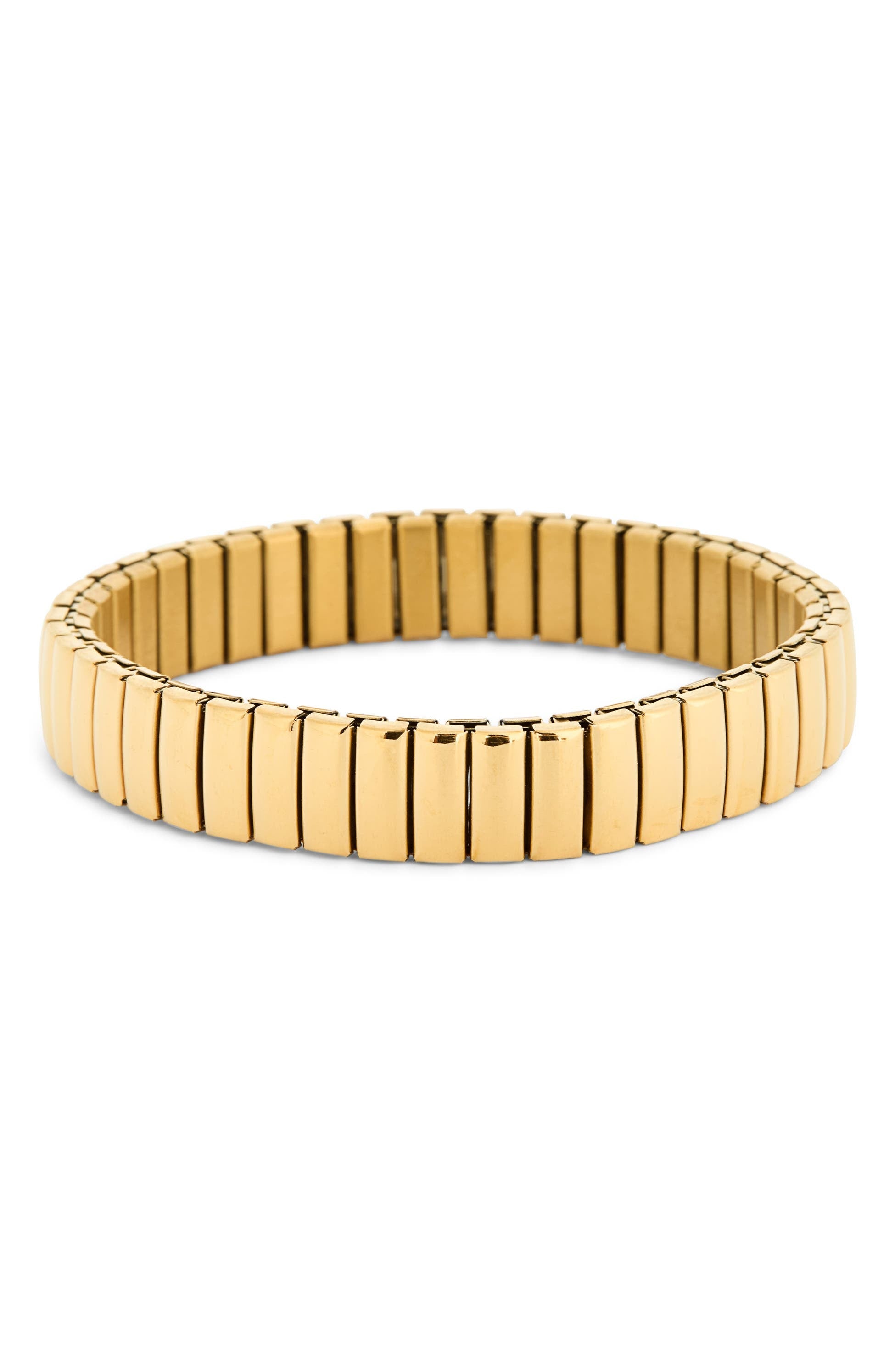 Classic wrist watch inspired stretch bracelet.