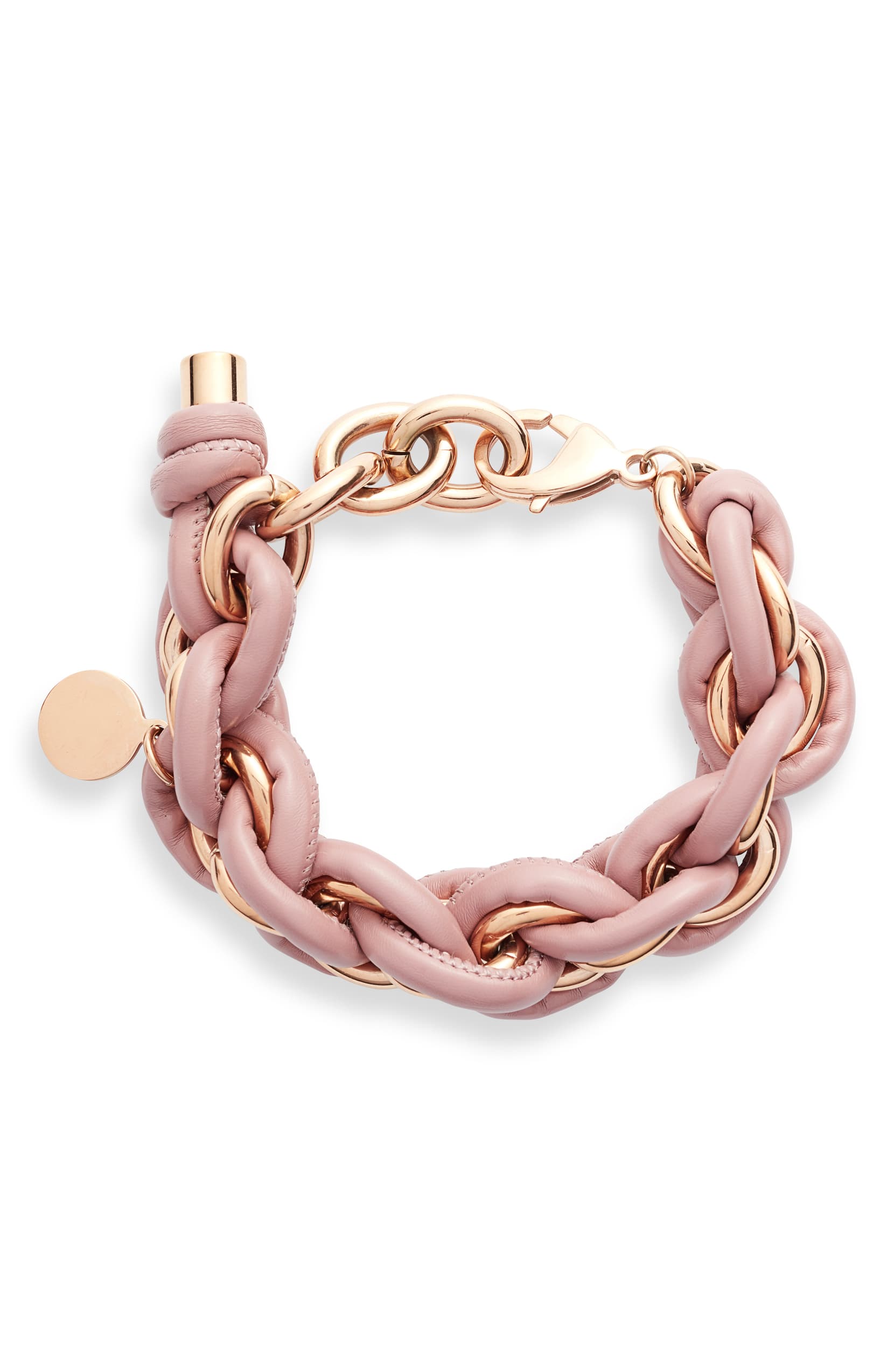 Statement leather wrapped chain bracelet.