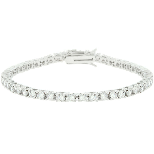 Reach for this tennis bracelet when layering on the shimmer. This piece promises a romantic and put-together finish. Our genuine rhodium finish is achieved using an electroplating process that coats the item with heavy layers of rhodium a close cousin to platinum which gives our jewelry a platinum luster.