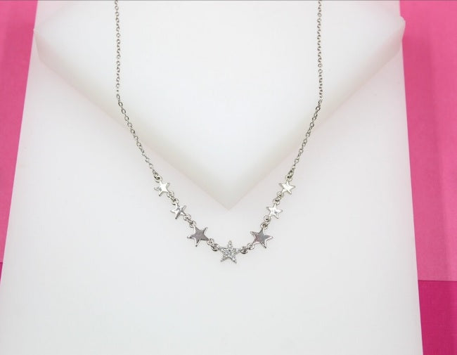 18K Gold Filled Stars Necklace With Cz Stones (G52)