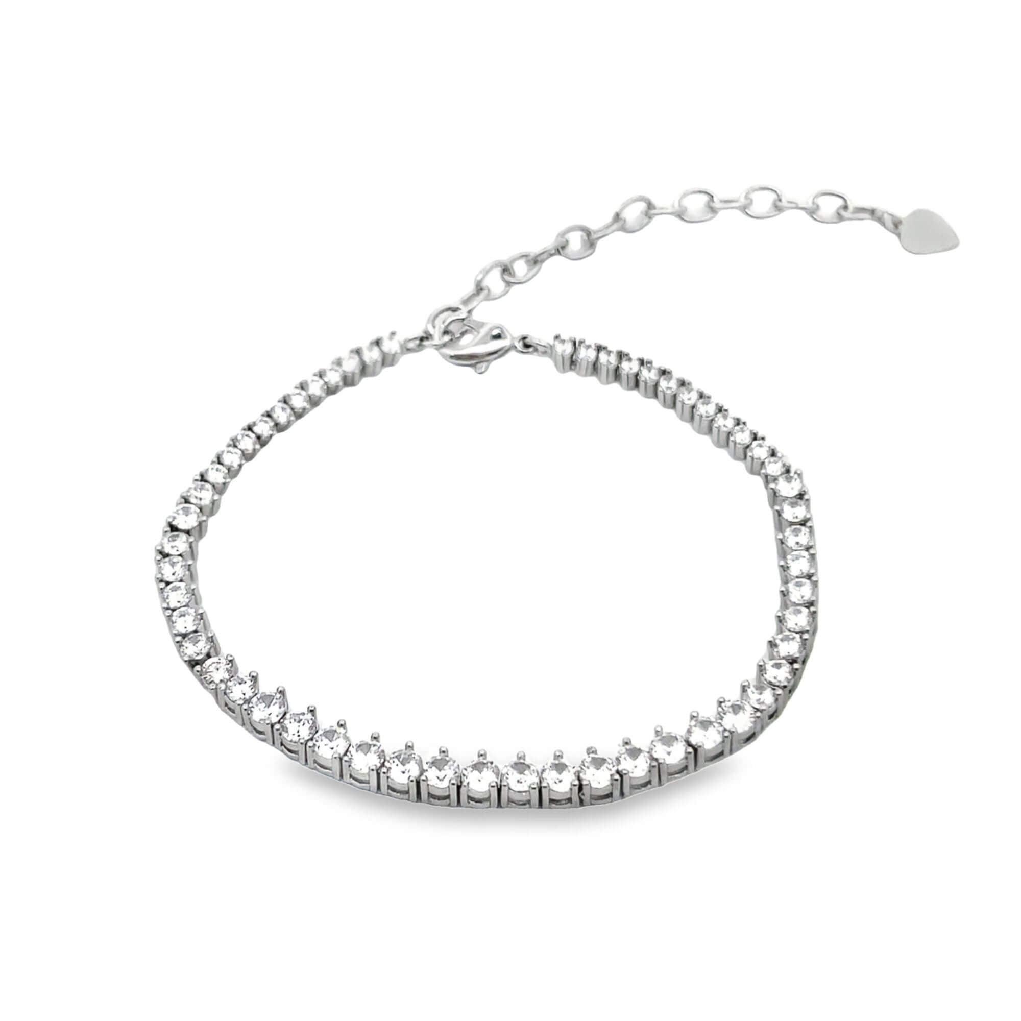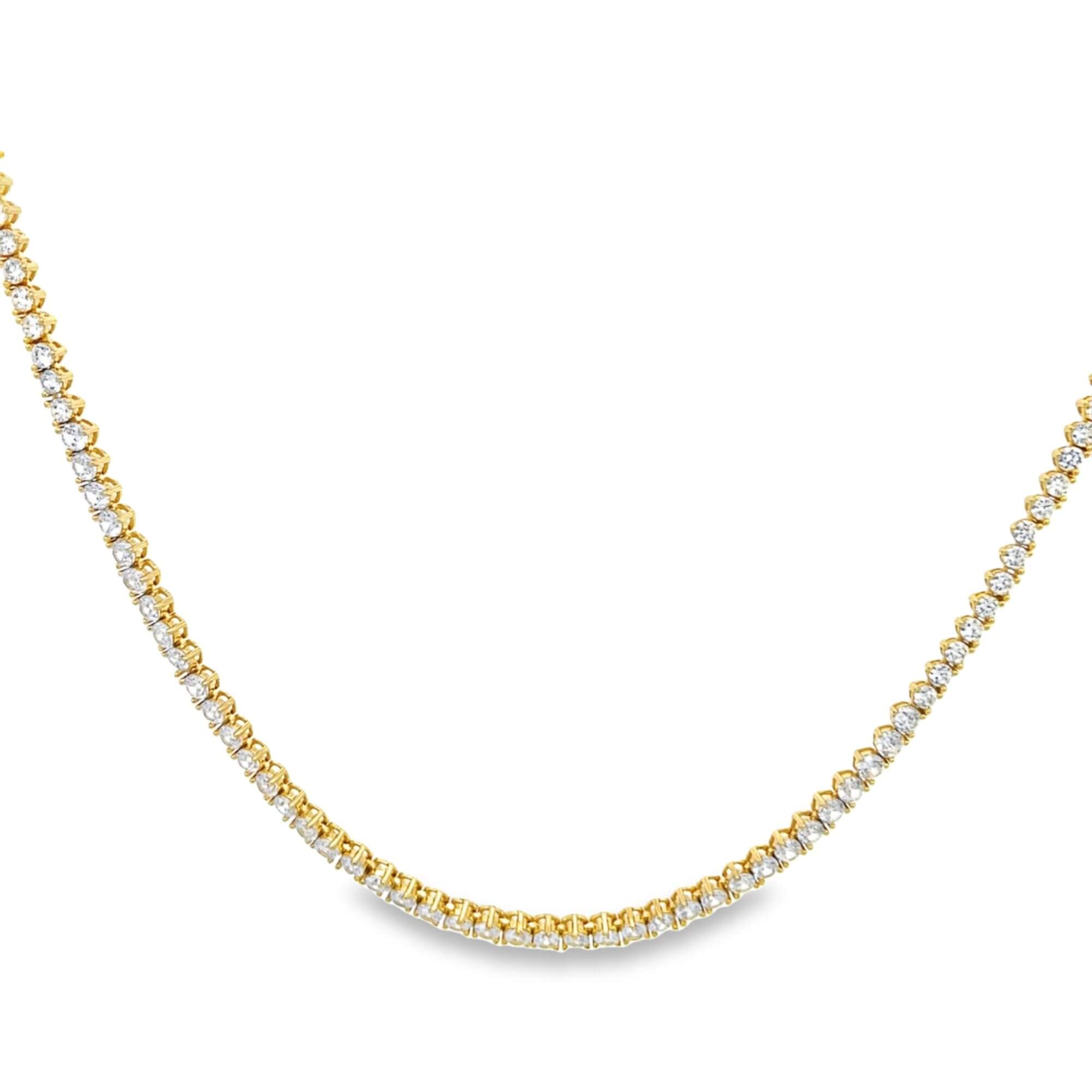 Indulge in luxury and elevate your style with our CZ Three Prong Tennis Choker. Exquisitely crafted from premium materials, this choker features three dazzling CZ stones, adding an elegant touch to any outfit. Its sleek design and secure three-prong setting will have you feeling confident and chic.