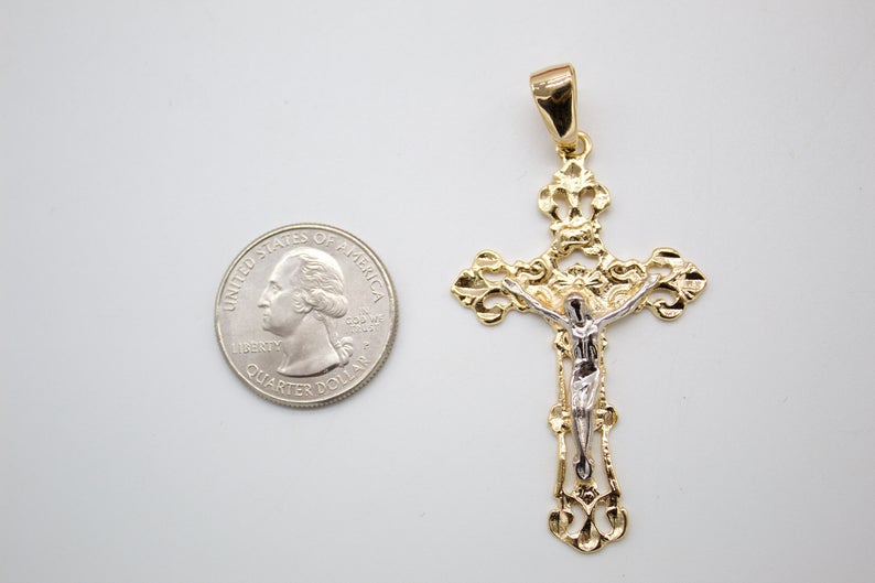 Discover the Crucifix Cross Pendant, crafted from high-quality gold-filled material. Measuring 50mm x 32mm, this elegant piece is perfect for those who cherish their faith.