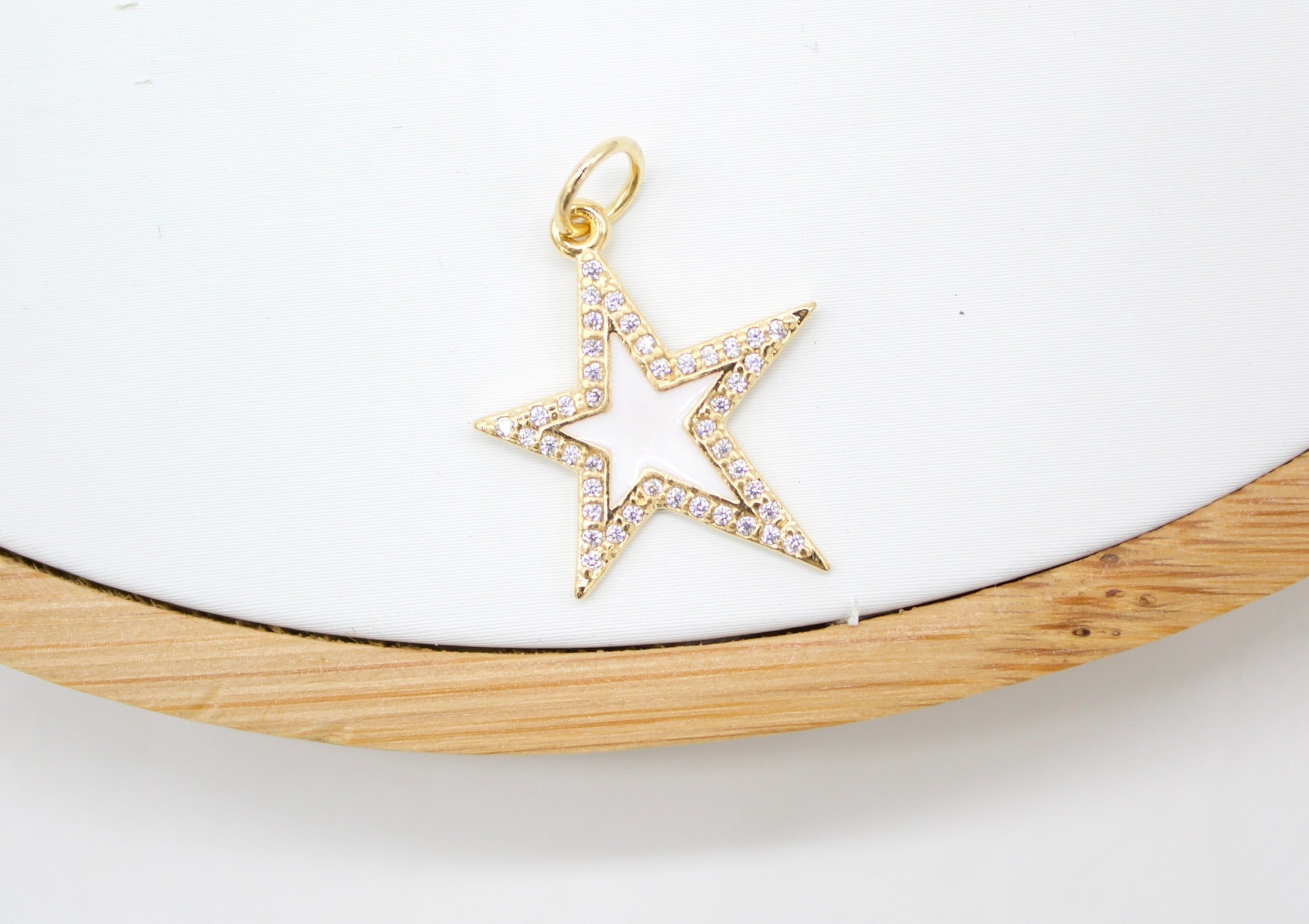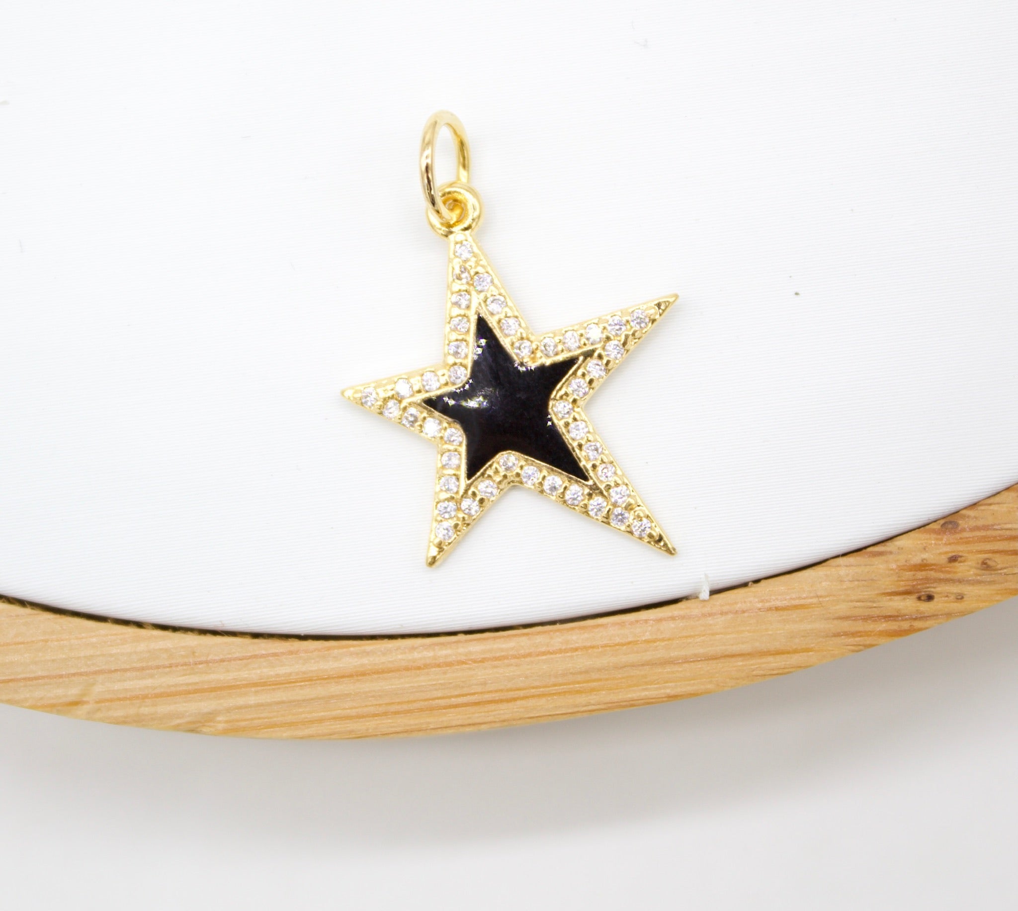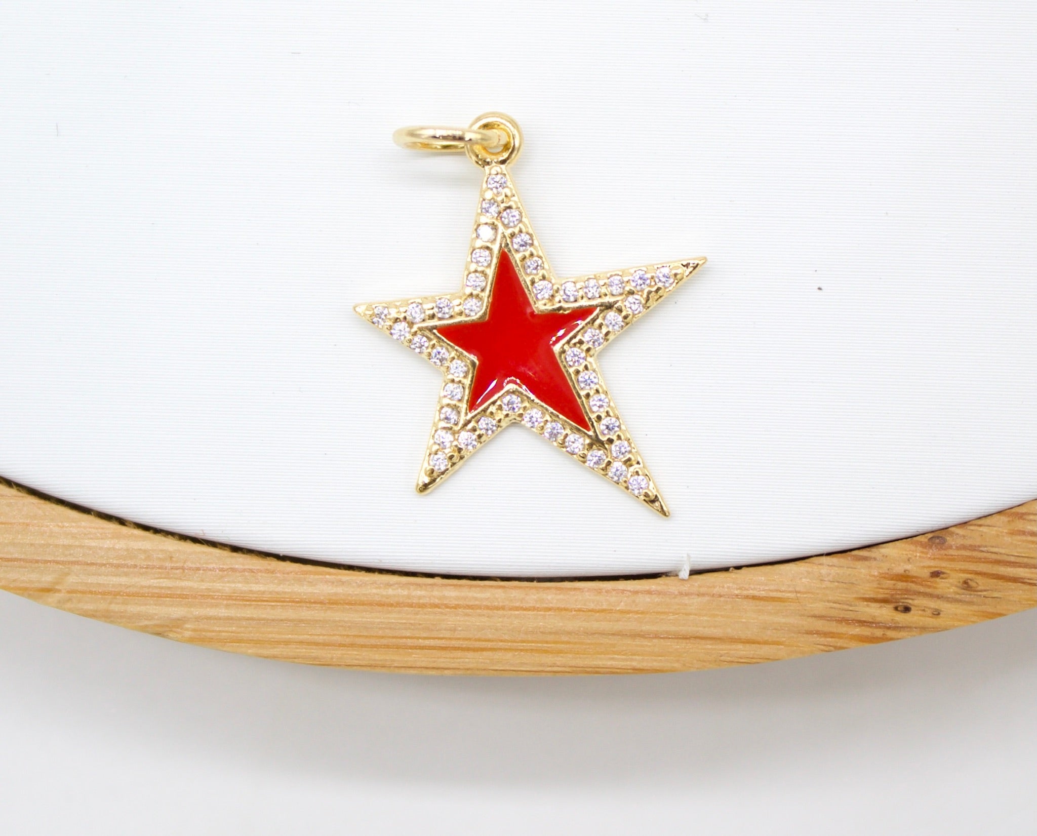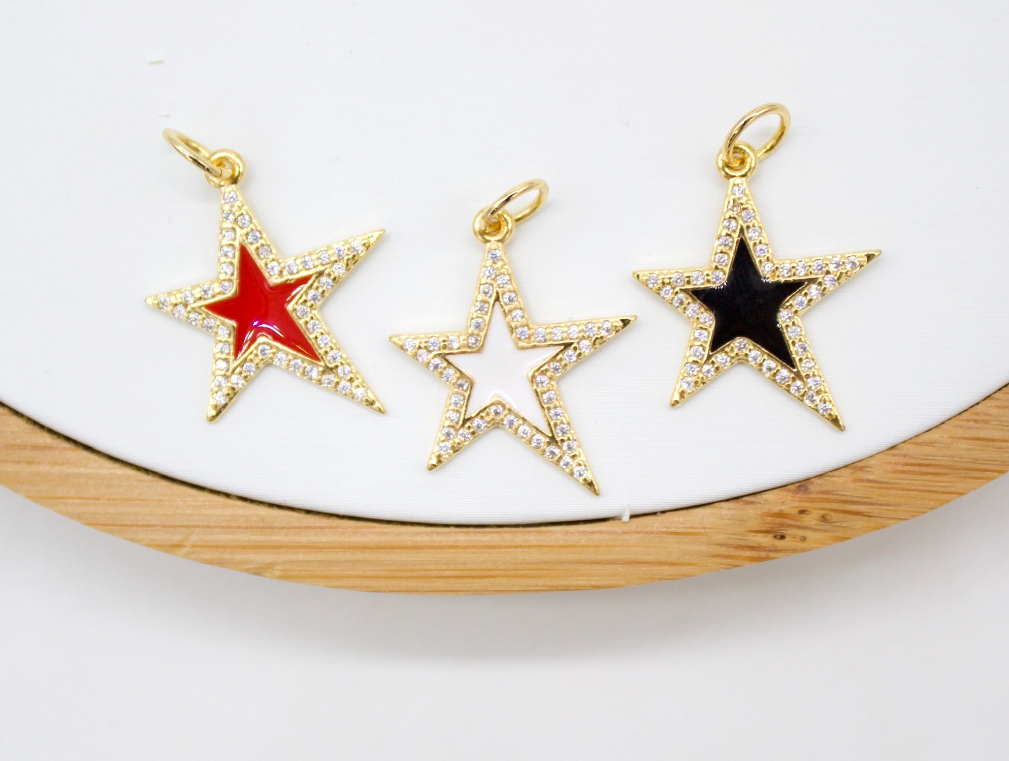 18K Gold Filled Large Enamel Star Pendant with Micro Pave Cubic Zirconia CZ Stone