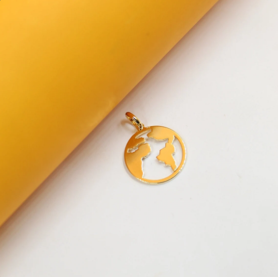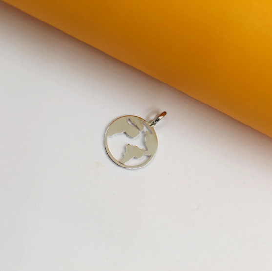 18K Rhodium Filled Globe Medallion Pendant | Silver Globe Pendant