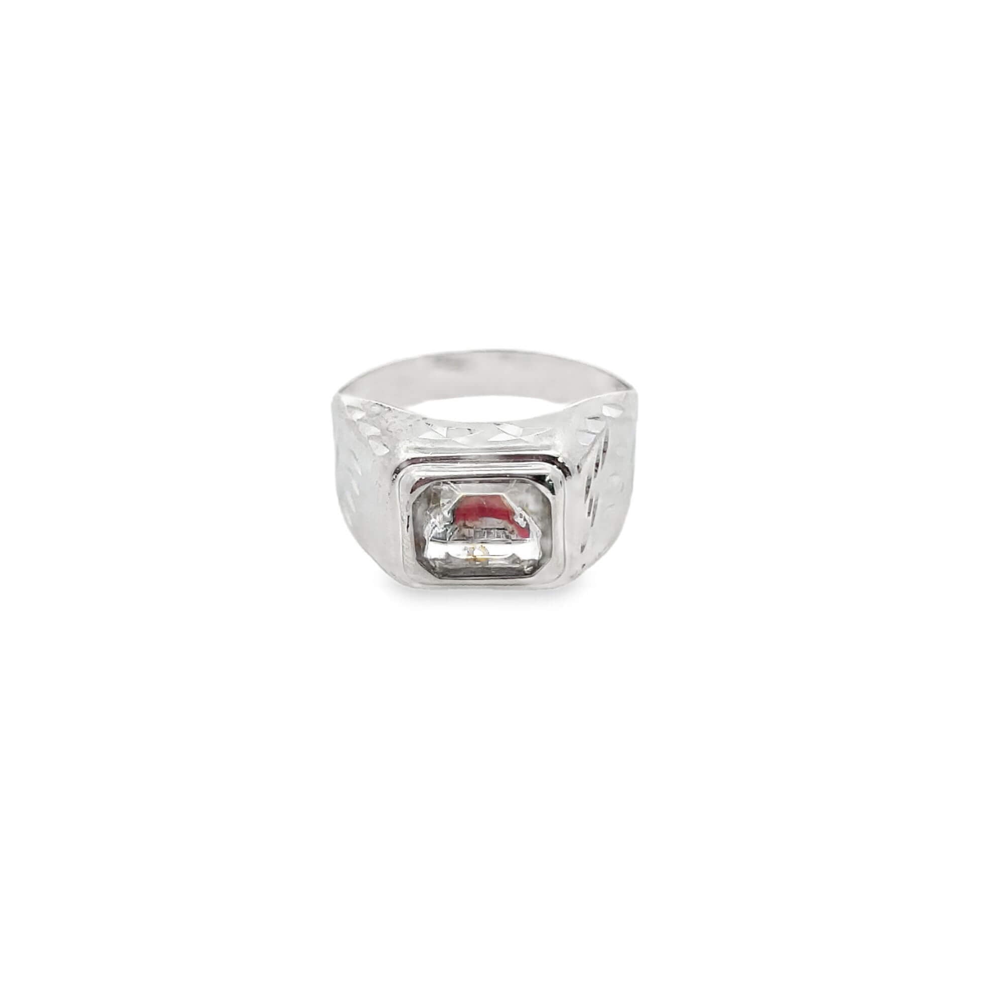 Rhodium Feather Pattern Gemstone Ring