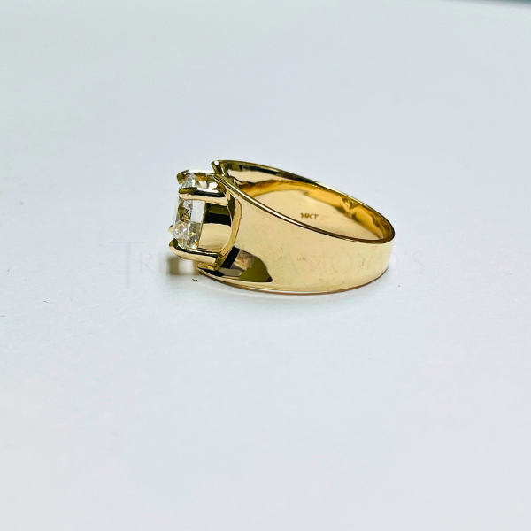Experience the perfect blend of boldness and elegance with this 1 to 3 carat round cut diamond set in a broad band 14K solid gold solitaire engagement ring. The wider band emphasizes the diamond’s brilliance while offering a comfortable, confident fit. Designed to celebrate your unique love story, this ring promises lasting beauty and meaningful commitment.