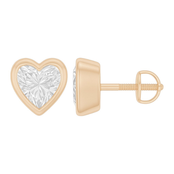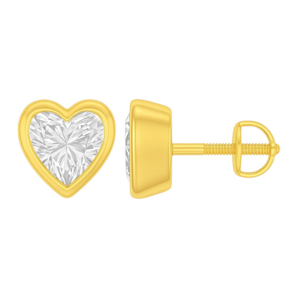 Heart Cut Diamond Bezel Setting 14K Solid Gold Solitaire Earrings Stud - IGI Certified