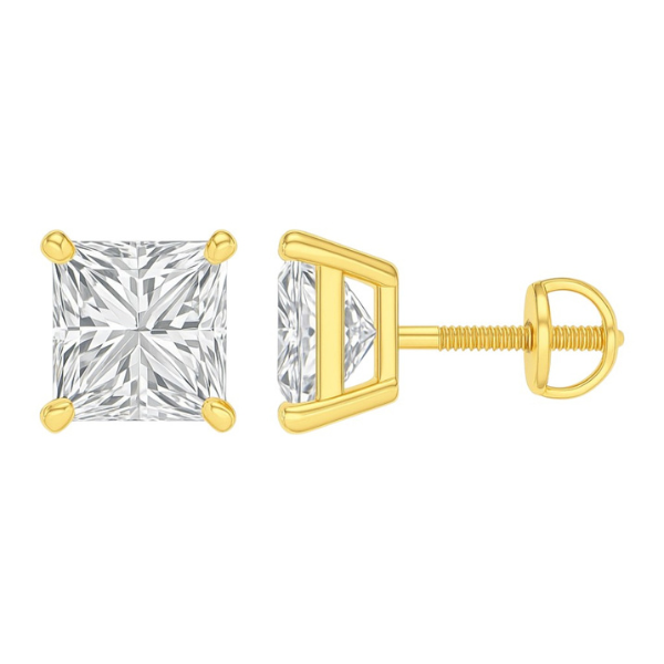 These 14K Solid Gold Princess Cut 4 Prong Solitaire Diamond Earrings Studs are the perfect addition to any ensemble. Featuring a classic princess cut design, these earrings are crafted from solid 14K gold and are secured with 4 prongs for extra security.
