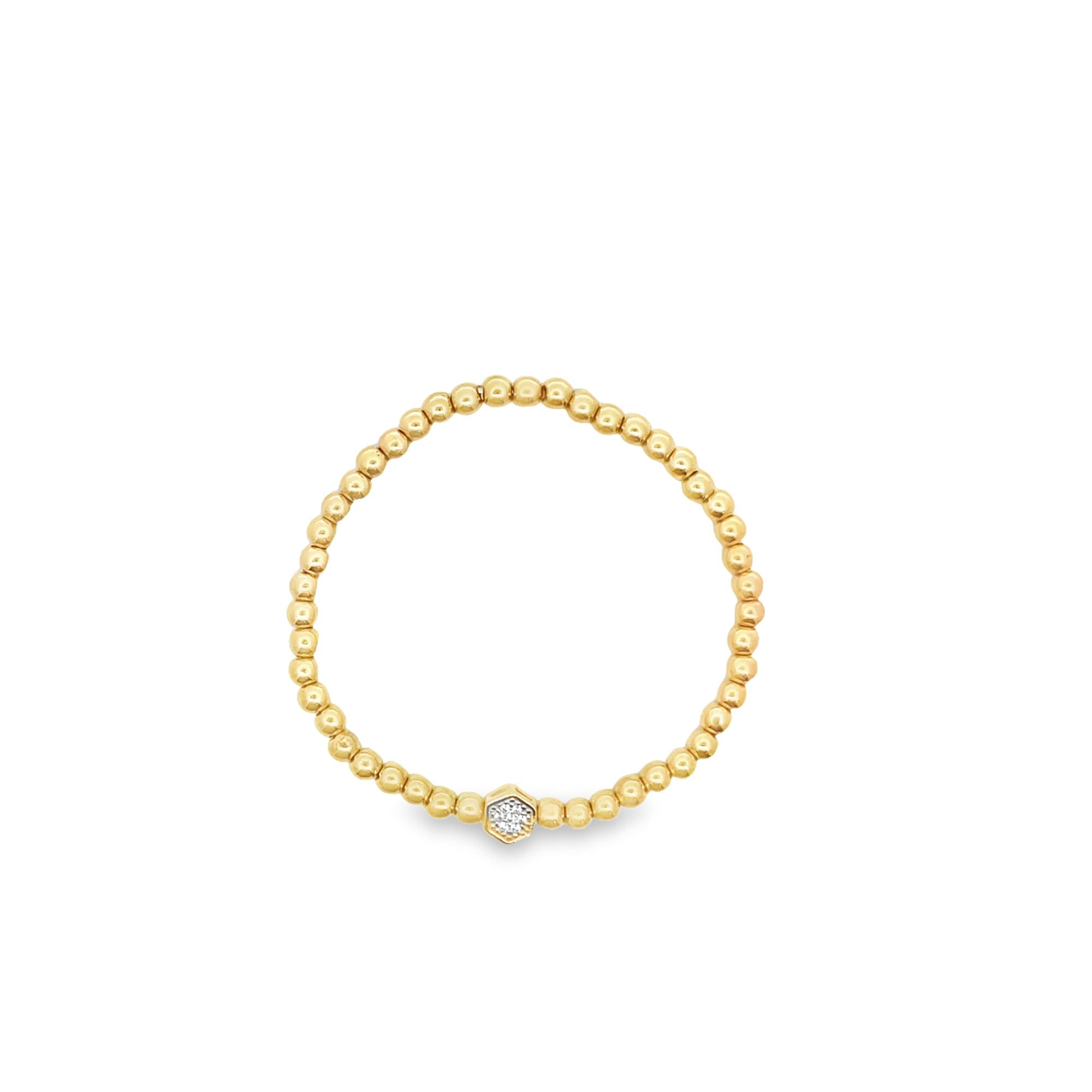 4mm Gold Elastic Bead Bracelet With OCTAGON CZ Charm (I49)