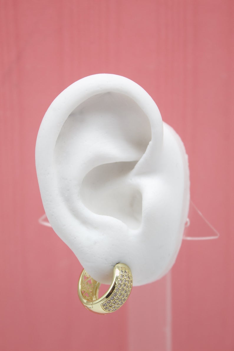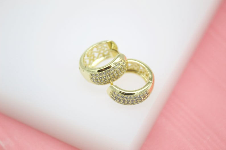 18K Gold Filled Huggies Earrings With Micro CZ Cubic Zirconia Stones