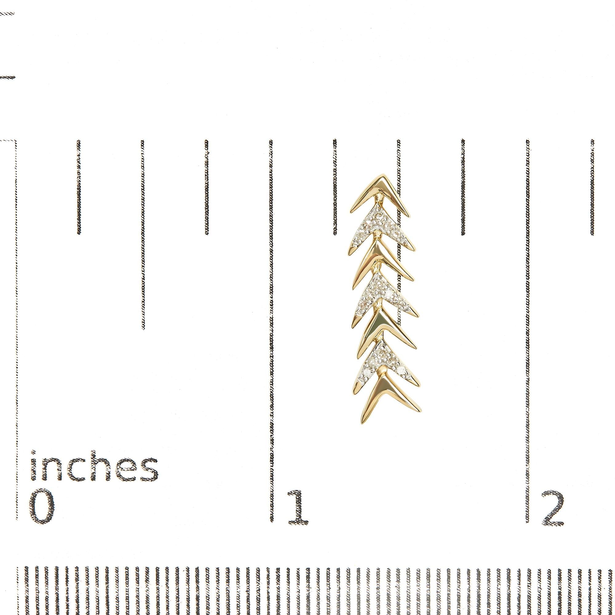 Let elegance take flight with these enchantingly crafted stud earrings, designed to mirror the precision of a chevron arrow. The harmonious alignment of arrowhead contours, each meticulously set with radiant natural diamonds totaling 1/5 carat, adds a layered depth of sophistication. Fashioned in .925 sterling silver and lavishly plated in 18K yellow gold, these studs blend enduring strength with opulent aesthetics. The diamonds, with an I-J color and I2-I3 clarity, glisten with a discreet luster that catches the light, promising a subtle yet compelling sparkle. Each piece secures comfortably with a classic post and butterfly back, ensuring they grace your lobes with their presence consistently. Perfect for both daytime charm and evening glamour, these earrings promise to be an indispensable addition to your jewelry collection, enhancing every ensemble with a touch of refined splendor.