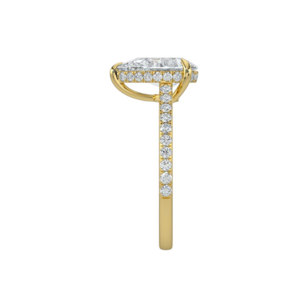 Elevate your elegance with this 2 Carat Pear Shape Hidden Halo Engagement Ring, meticulously crafted in 14K solid gold. The pear-shaped diamond is gracefully embraced by a concealed halo, amplifying its radiance with refined subtlety. This exquisite design blends classic sophistication with modern allure, making it a timeless symbol of enduring love.
