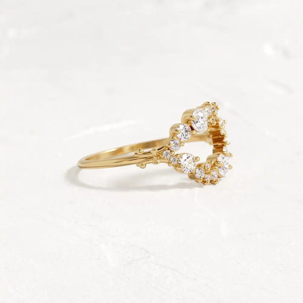 925 Silver Double Curved Round Cut Colorless Moissanite Diamond Proposal Ring Elegant and Luxurious