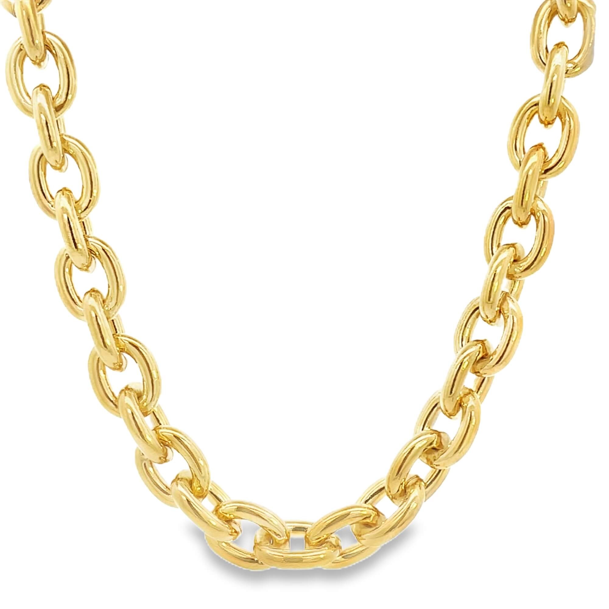 Indulge in luxury with our Thick 11mm Oval Rolo Bracelet. The thick design adds a touch of sophistication to any outfit, while the oval rolo style offers a timeless elegance. Crafted with high-quality materials, this bracelet is perfect for making a bold statement and elevating your style.